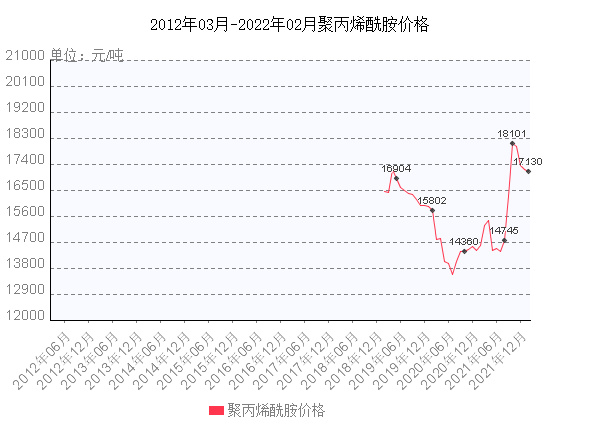 聚丙烯酰胺價格走勢圖,聚丙烯酰胺價格是根據(jù)其型號、指標而定的,按照離子型分為:陽離子、陰離子、非離子,三者對比價格陰離子比較便宜陽離子相對較貴。